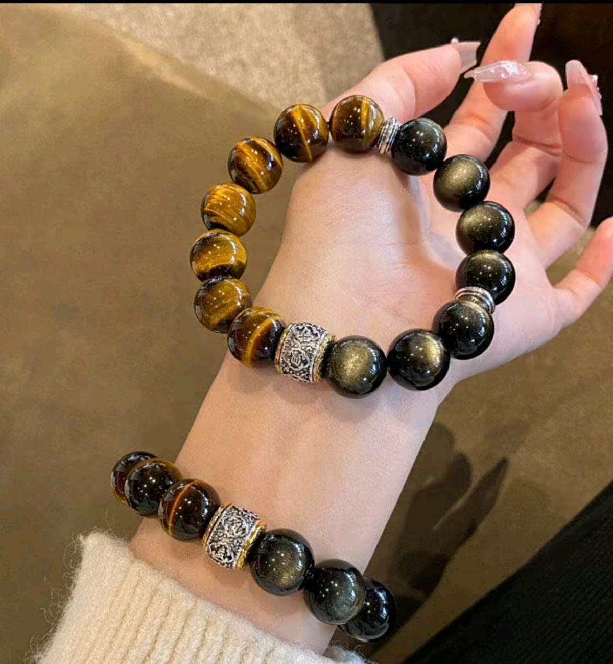 ✅增强魄力,提升气场 虎眼石的金黄纹路自带霸气质感,搭配黑曜石的沉稳色泽,可提升个人魄力与决断力。让你在社交与职场中更具自信,展现强大气场,助力人脉拓展与事业突破。