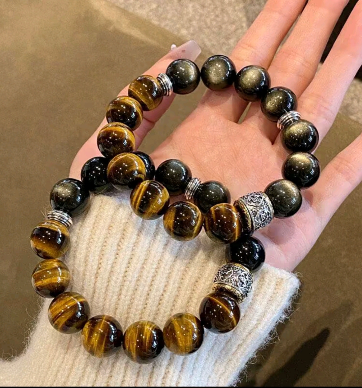 ✅转运辟邪,护身挡煞 黑曜石是强力辟邪的能量石,可驱散负能量与霉运;虎眼石增强个人气场,形成护身屏障。尤其适合本命年或运势波动期佩戴,能打通流年运势,逢凶化吉,护佑日常出行与工作生活平安顺遂。